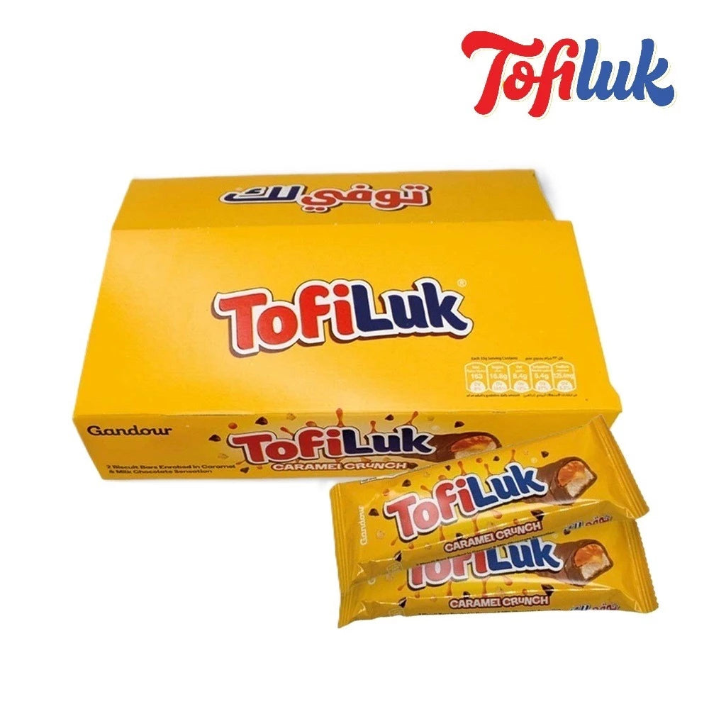 TOFILUK IS DYNAMIC DUO OF BISCUIT BARS, ENVELOPED IN RICH CARAMEL AND COATED WITH VELVETY CHOCOLATE, PROMISES A SYMPHONY OF FLAVORS IN EVERY BITE.
