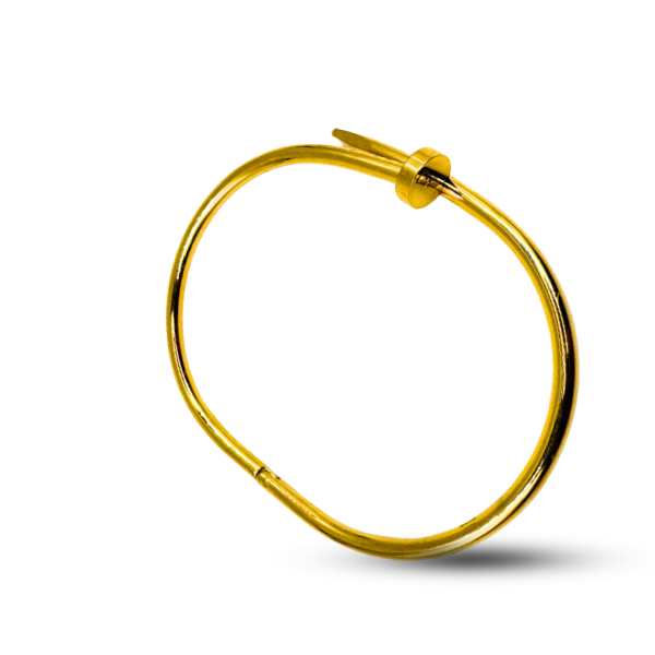 Bold, modern, and effortlessly chic, this nail-inspired bracelet is a statement of strength and sophistication. Crafted from 10K non-tarnish gold, its sleek, polished design wraps elegantly around the wrist, resembling a refined nail silhouette. The minimalist yet edgy aesthetic makes it perfect for both casual and formal styling, adding a touch of luxury to any outfit. Designed for trendsetters and fashion-forward women, this bracelet is a must-have for those who appreciate iconic, contemporary jewelry with a bold edge.