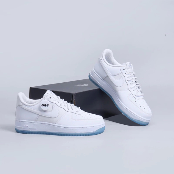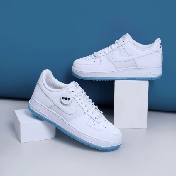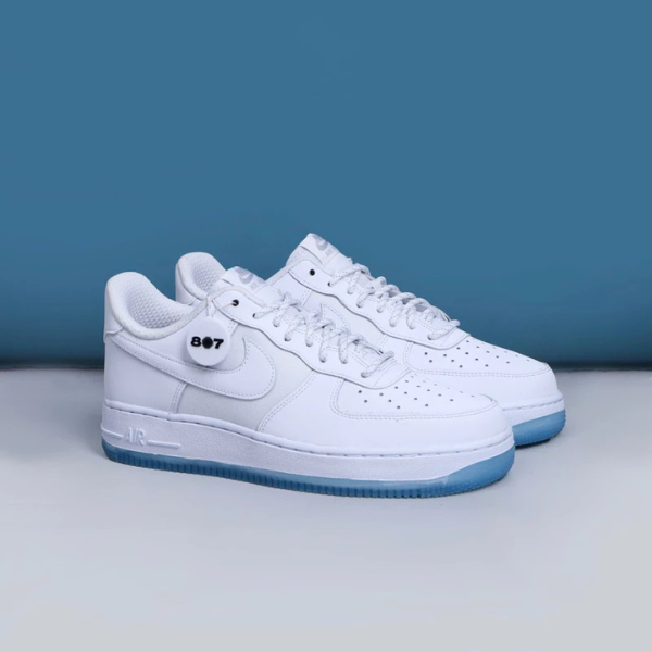 The Nike Air Force 1 Low White Ice Blue blends classic style with a fresh, icy twist. Featuring a crisp white leather upper, icy blue outsole, and signature Air cushioning, this sneaker delivers timeless appeal with a cool, modern edge. Perfect for everyday wear with a touch of sophistication.