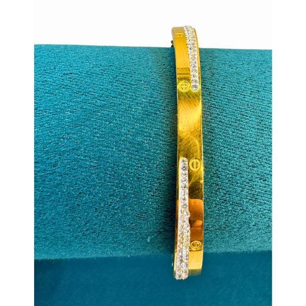 For an effortless stacking bracelet, this gold bar bracelet is a sleek and modern addition to any jewelry collection. Crafted from 10K non-tarnish gold, its simple yet bold design makes it a versatile staple. Whether layered or worn alone, this piece enhances any outfit with a touch of elegance and sophistication.