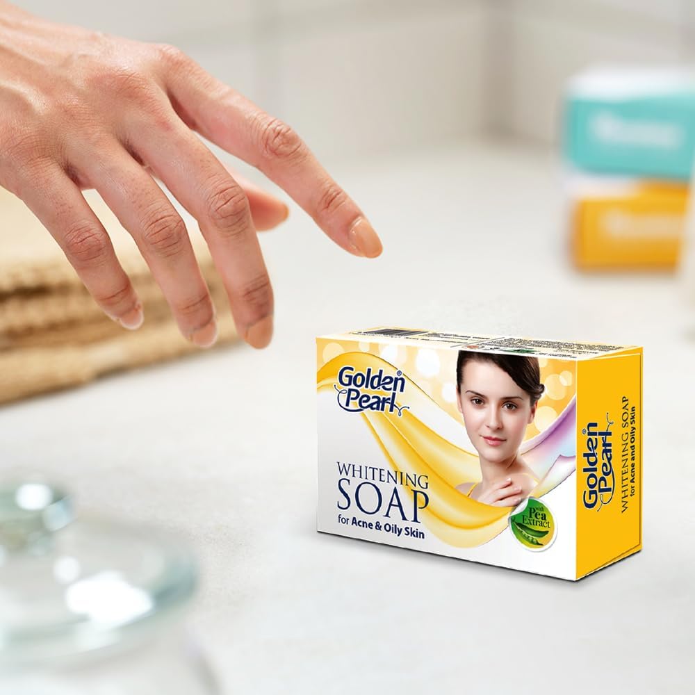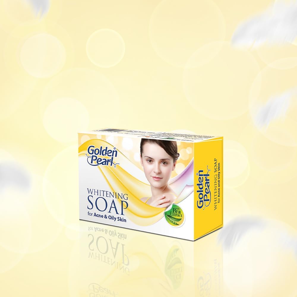 - Golden Pearl whitening soap for acne and oily skin cleans the skin pores and removes excess oil from the skin. This soap contains Pea Extract along with special anti bacterial formula, which kills bacteria that create acne and pimples.